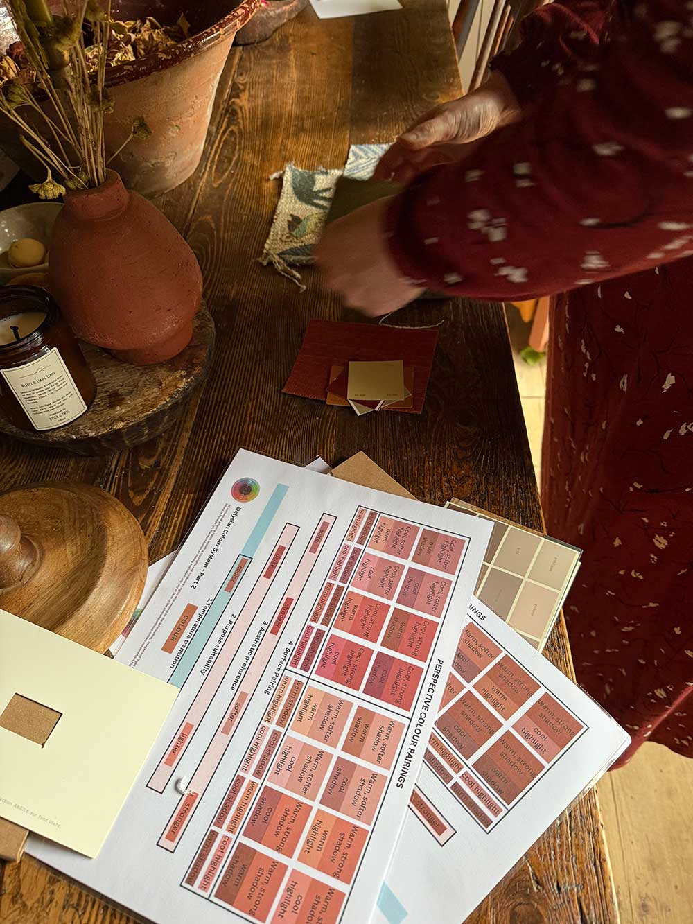 Taught at my North London home, Lantern Cottage, these two workshops begin with DCS part 1 Aesthetic Narrative which will help you map the foundations of a colour scheme for any interior space. You’ll apply my signature method of exploring dynamic and subjective influences to deliver colours that feel like you.